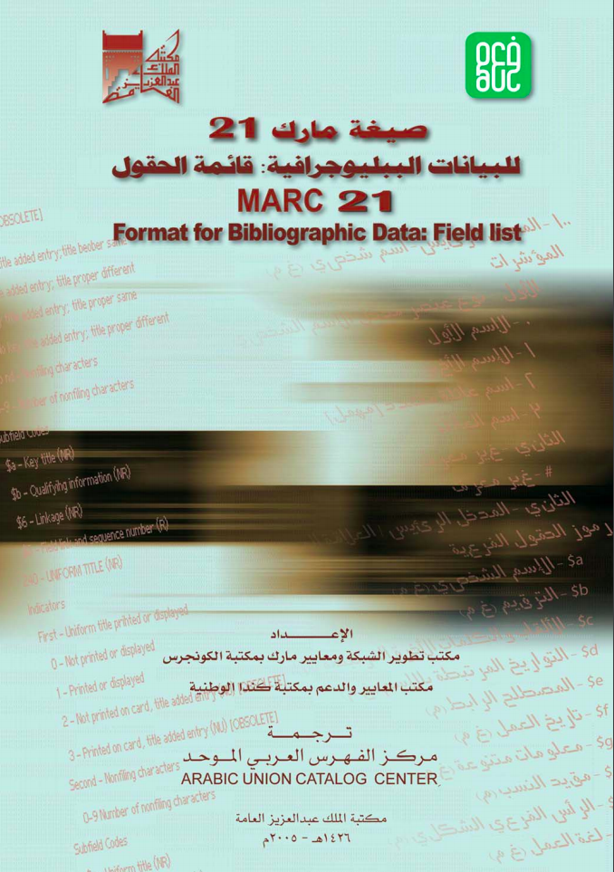 - Any -صيغة ماركالتفريعاتوسم 1 Image تفسير العلاقات الببلوجرافية حسب نموذج فربر ومعيار مارك 21 تحميل Image الدليل العملي لقواعد وام في الضبط الاستنادي لأسماء الهيئات وفق معيار مارك 21 تحميل Image الدليل العربي للفهرسة باستخدام قواعد التقنين الدولي وإتاحة الموارد الببليوجرافية وفقا لمعيار مارك تحميل Image الدليل العملي لقواعد وام في الضبط الاستنادي لأسماء الاشخاص وفق معيار مارك 21 تحميل Image الكشاف العام للتفريعات الحرة والتفريعات المقيدة بالرؤس النمط تحميل Image التفريعات المقيدة بالرؤوس النمطية تحميل Image صيغة مارك 21 لبيانات المقتنيات : قائمة الحقول تحميل Image الاهتمام بالوثيقة العربية لتطوير المحتوى العربي تحميل Image معالجة كل ما يخص التاريخ في قواعد الفهرسة الانجلو أمريكية وصيغة مارك ٢١ وقضية استخدام التاريخ الهجري في التسجيلات الببليوجرافية تحميل Image صيغة مارك 21 للبيانات الاستنادية : قائمة الحقول تحميل Image صيغة مارك 21 للبيانات الببليوجرافية : قائمة الحقول تحميل Image صيغة مارك 21 لبيانات التصنيف: قائمة الحقول تحميل Image استيعاب صيغة مارك الببليوجرافية : الفهرسة المقروءة آليا تحميل Image تسجيلة المستوى الوطني-- الصيغة الاستنادية المستوى الكامل تحميل Image صيغة مارك 21 للبيانات الاستنادية : قائمة الحقول تحميل Image صيغة مارك 21 للبيانات الببليوجرافية : قائمة الحقول تحميل Pagination 1 2 التالي Next page الصفحة الاخيرة Last page