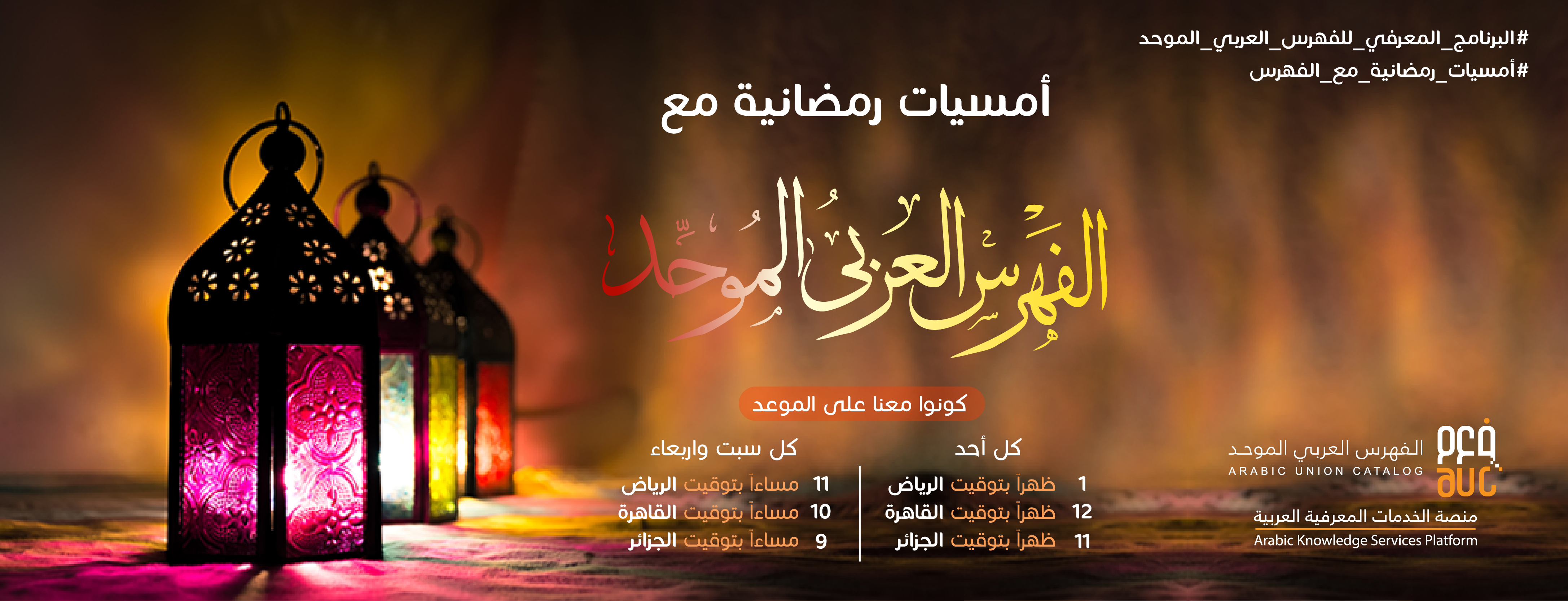 22 avril 2020 Félicitations à l'occasion du mois béni du Ramadan 21 avril 2020 Soirées du Ramadan avec le Catalogue 16 avril 2020 Le catalogue arabe uni enrichit sa base de données bibliographiques de sources d'informations sur l'épidémie émergente du virus Corona. 5 avril 2020 Le catalogue arabe uni lance l'initiative # Investissez votre temps dans la lecture 10 février 2020 Participation au comité des doyens et des responsables des bibliothèques des universités et des établissements d'enseignement supérieur des pays du Conseil de coopération 5 février 2020 Session de formation sur la "Description bibliographique de livre conformément aux règles RDA et Marc 21 et pratiques du catalogue arabe uni" à l'Université Umm Al-Qura 16 janvier 2020 Le catalogue arabe uni s'est qualifié pour les prix du Sommet mondial sur la société de l'information. Nous vous invitons à voter pour le catalogue. 1 janvier 2020 Visite de l'Université de la Princesse Nora Bint Abdul Rahman 17 décembre 2019 Session de formation sur la description bibliographique des livres conformément aux règles RDA au centre du catalogue arabe uni Pagination 1 2 3 4 5 6 … Suivant Page suivante Last Page Dernière page